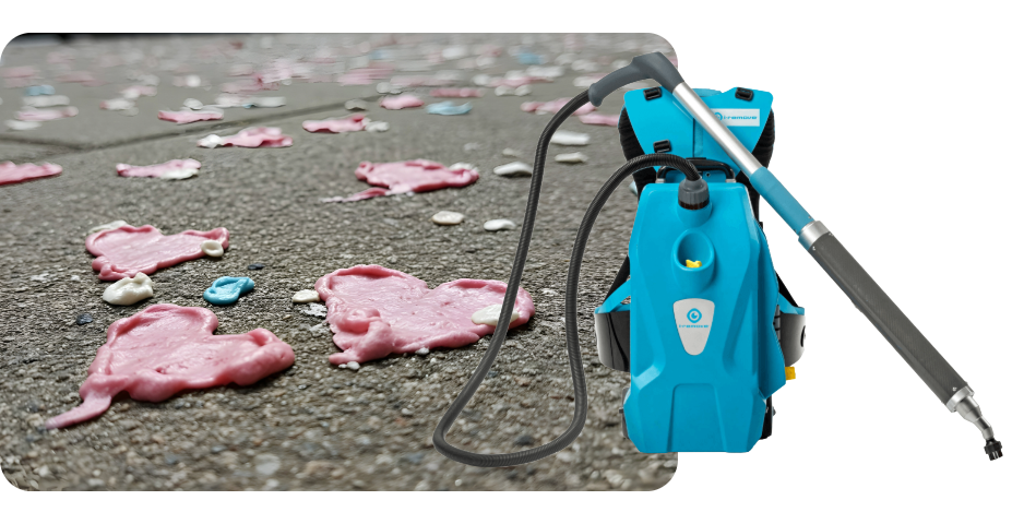 Kauwgumverwijderaars die plakkerige resten moeiteloos verwijderen. Compact, mobiel en efficiënt voor scholen, openbare ruimten en drukbezochte locaties.
